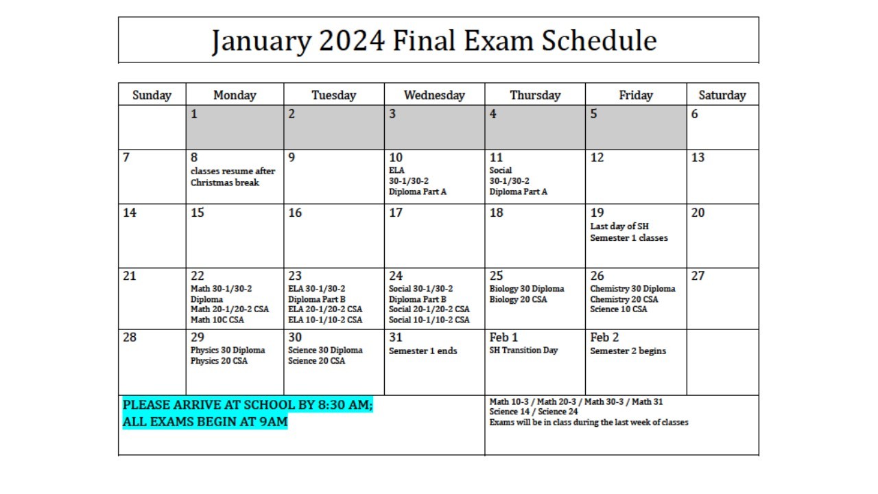 Final Exam Schedule 2024